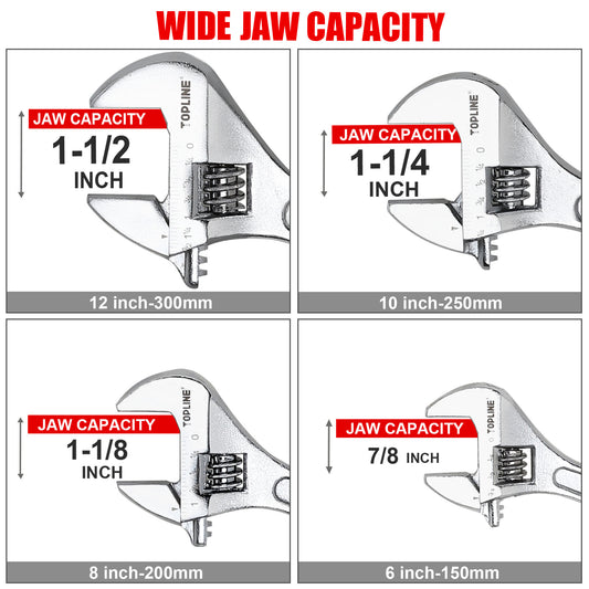 TOPLINE 4-Piece Adjustable Wrench Set for Plumbing and Basic Home Maintenance