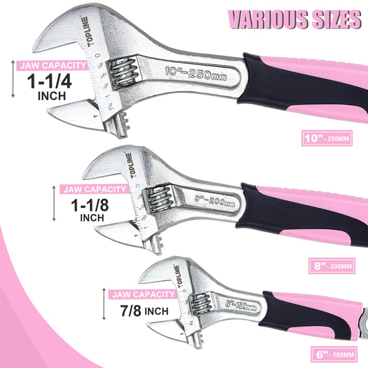 TOPLINE 3-Piece Pink Adjustable Wrench Set for Plumbing and Basic Home Maintenance