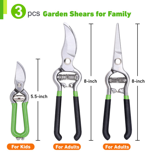 TOPLINE 3-PC Professional Garden Shears for Basic Trimming, Flower Arrangement and Fruit Picking.